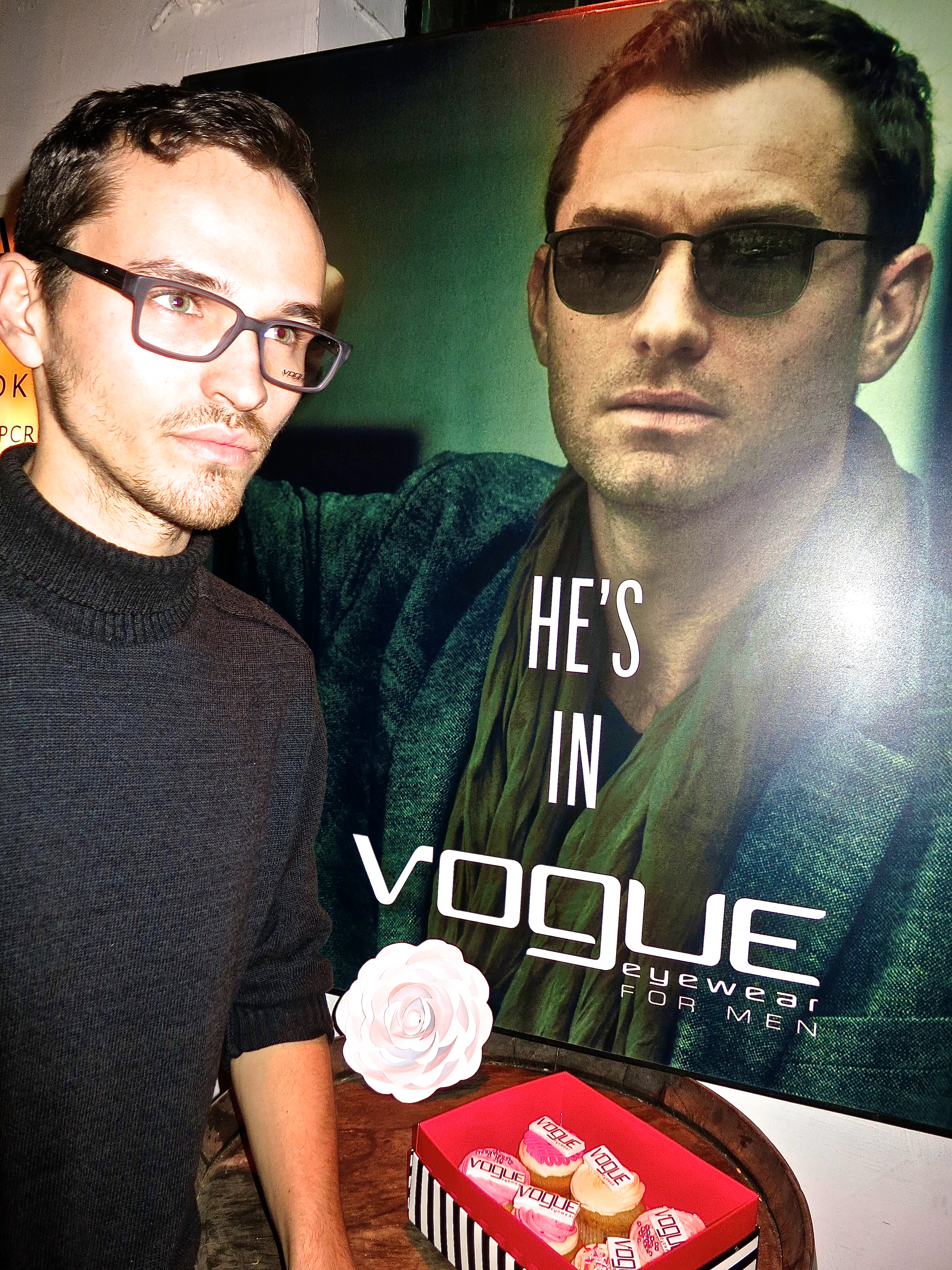 שיתוף הפעולה בין ג'וד לאו למותג המשקפיים "VOGUE" נולד מתוך הרצון של המותג האיטלקי, המזוהה עם עיצובים עדכניים ומראה זוהר, להתחבר לאחד מסמלי הסטייל הגברי המודרני המובילים של ימינו. הצלע הנשית של המותג היא הטופ מודל קייט מוס, המובילה בעולם את הליין הנשי של המותג. הקמפיין העולמי של קולקציית משקפי השמש והראייה לגברים "VOGUE" יהיה מלווה בסלוגן "HE'S IN VOGUE".
