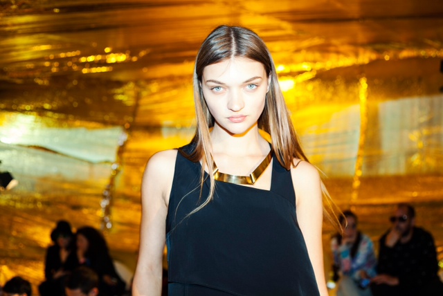 The runway was placeג inside a magical spaceship set with the entire space covered with sheets of gold giving the show a unique and luminous presence.