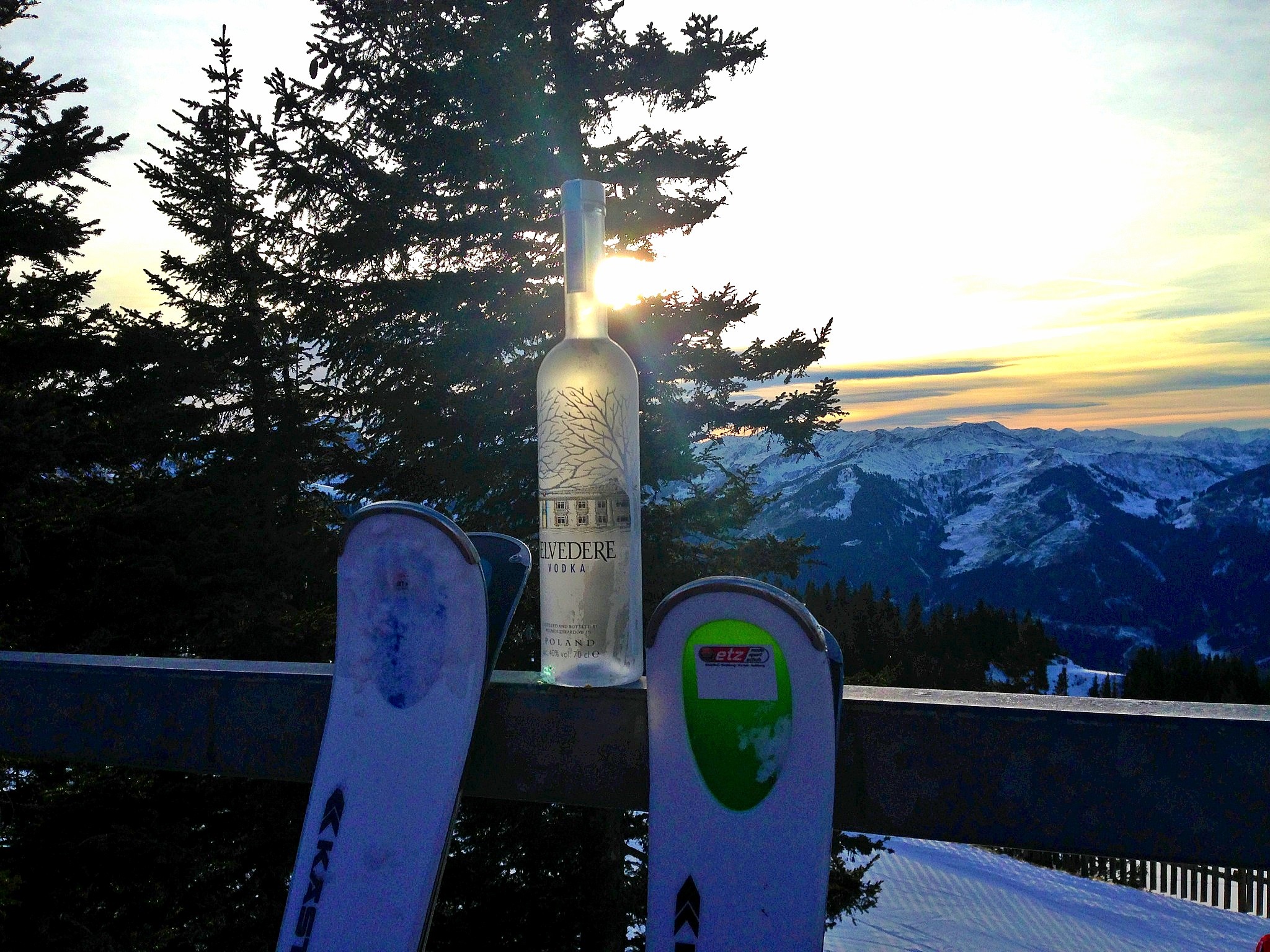 Nevertheless, I conquered my fears, boarded a 737 and a few hours later landed straight into the Tyrolean Alps. My suitcase was packed with all sorts of things: my favorite Louis Vuitton bag, my bigger Prada bag, a new Dare2b ski suit, goggles, a big ol' scarf, my UGGs to keep me warm and one Vodka Belvedere bottle.