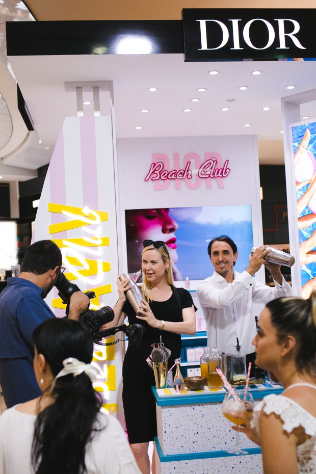 כל החנות התהדרה לה בצוות שכלל נוכחות מכובדת של בית האופנה דיור, אנשי קוקטייל ומיקסולוגים- מעולם לא ראיתי כזה דבר נעשה בתוך שדה תעופה… DIOR התאימו קוקטייל מיוחד לכל בושם, ואפילו אני שהייתי כאמור בחודש תשיעי התחלתי לשקשק ויצרתי קוקטייל מהמם עבור בושם JOY של DIOR, קוקטייל ורדרד, מהנה ורענן.