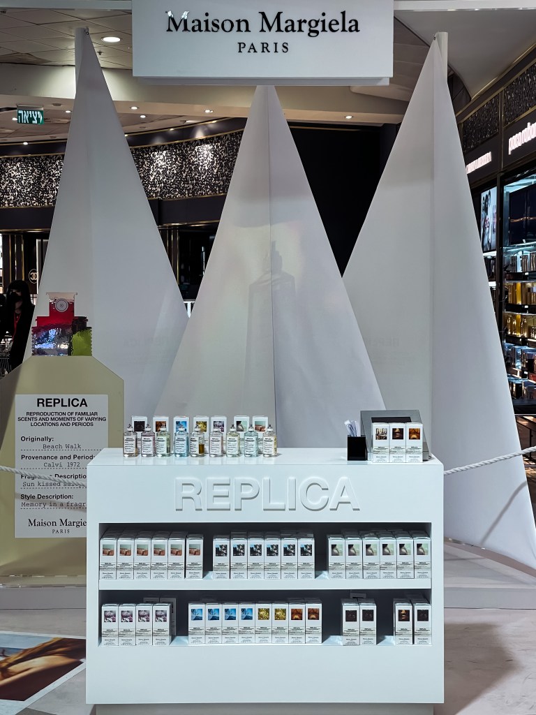 קולקציית הבישום REPLICA מבית האופנה הבלגי, לוקחת רגעים מחיי היומיום "ומשכפלת" אותם לבשמים ומכאן שמה. כל אחד מהבשמים מעורר זיכרון אופייני למשל BEACH WALK – רענן ובעל נגיעות קוקוס, מזכיר הליכה קלילה לצד הים, ריח של זכרון ימי קיץ אינסופיים לאורך החוף. לעומת JAZZ CLUB – שמזכיר ניחוח של בר קוקטיילים, ניחוח מעושן, ריח של עור ואילו FLOWER MARKET – המזכיר את חוויית הכניסה לשוק פרחים תוסס.