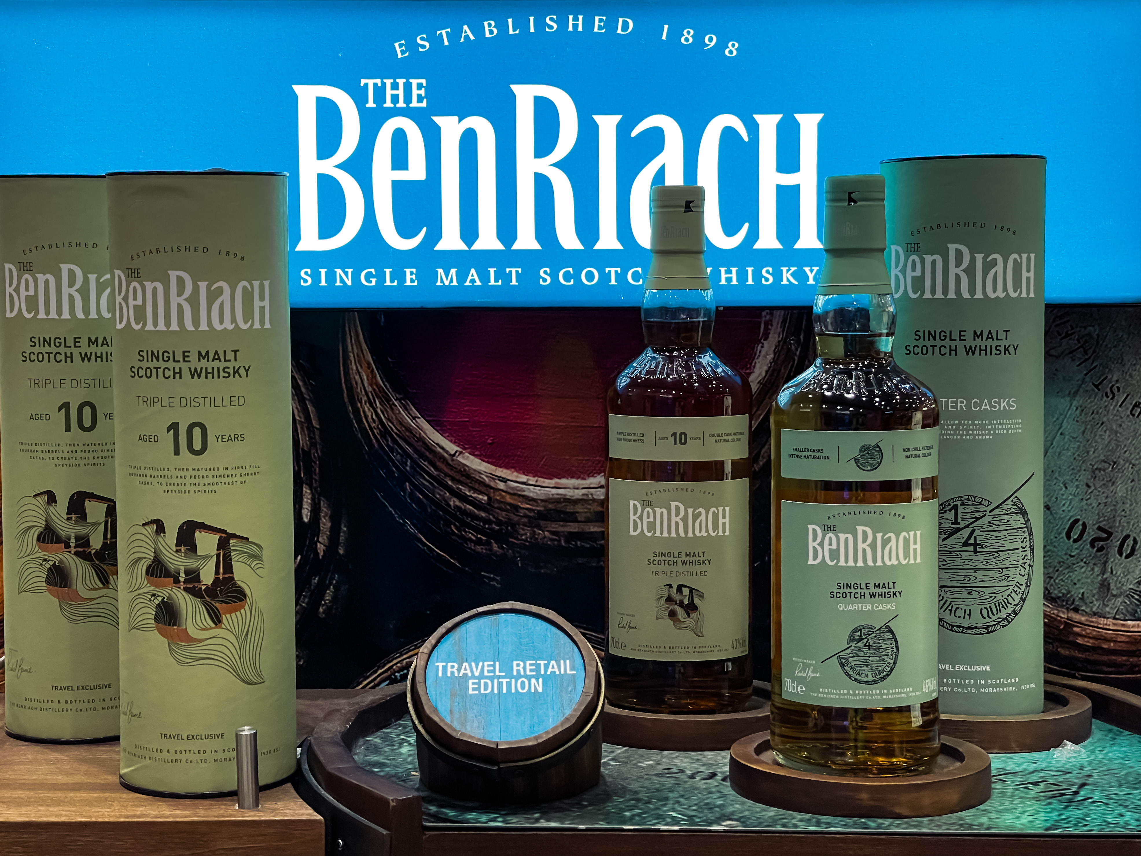 Benriach, ויסקי סינגל מאלט סקוטי בן 10 שנים, הוא הדרינק שלכם. הויסקי עובר זיקוק משולש שמחדד ומעצים את טעמיו, ולאחר מכן עובר יישון בחביות ברבן ופדרו חימנז כדי להעניק לו מרקם חלק כקטיפה עם שכבות טעמים של פירות הדר מסוכרים, וניל עשיר וקרמי, דבש, עץ קלוי ותבלינים חמים.